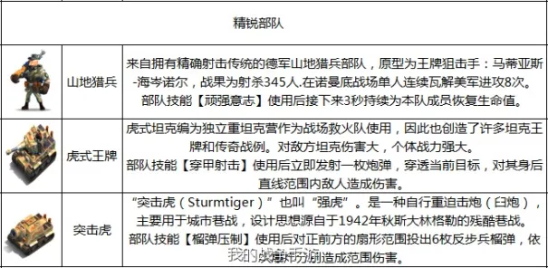 4、山地猎兵:来自拥有精确射击传统的德军山地猎兵部队,原型为王牌狙击手:马蒂亚斯-海岑诺尔,战果为射杀345人,在诺曼底战场单人连续瓦解美军进攻8次。