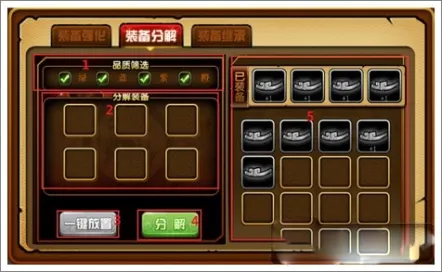 3、一键放置按钮,点击后帮玩家自动放入符合分解需求的装备。