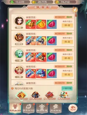 神秘商店---(开服第二天开启)用元宝刷新的次数每天建议用完,必买的道具:体力丹、朱雀碎片、九尾狐碎片、三藏碎片;用元宝购买的进阶丹,其它的不建议购买