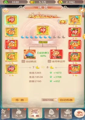 装备强化,升星,宝石,精炼,想对简单,有道具点一键即可。