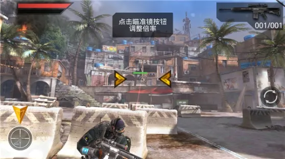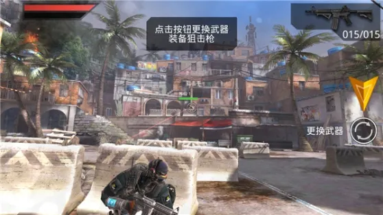 8、然后再次进入战后,对面有狙击手出没,我们点击旋转图案,更换武器;