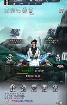 选完身份后,可以正式的开始自己的修仙之路了。一进入游戏,首先要记住每三分钟点击修炼一次,快速升到筑基开启自动升级是重中之重。