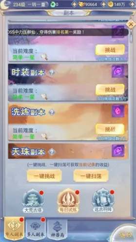 以上每个副本都需在固定时长内完成,所用时间越短通过星级越高,获取的奖励越多。