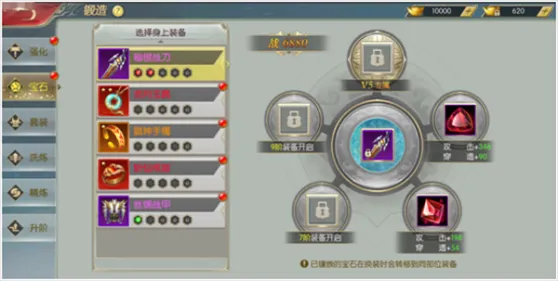 武器、项链、玉佩、手镯、戒指部位的装备可镶嵌攻击宝石