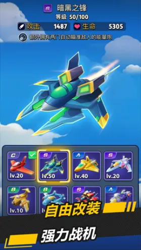 银翼战机全战机解锁版给玩家们准备了好几十种战机,并且咱们能够给这些战机配上各式各样的武器、弹药、大炮、设备啥的,以此来让战机的属性变得更强。当然了,你还能在银翼战机全战机解锁版中跟各类不同的敌人展开战斗,好好感受飞行射击带来的快乐。