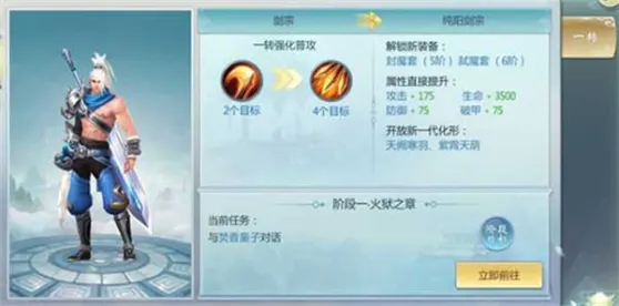 剑宗一转后将成为纯阳剑宗,普攻目标增多,由2个增至4个;解锁5、6阶装备;开放部分翅膀、法宝化形;还能为上仙们增加大量战力。