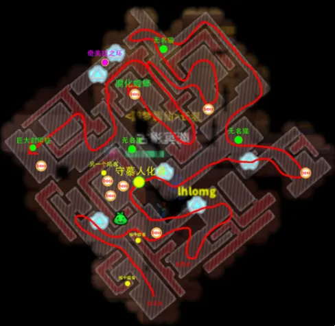 3.棺中陌客交付7个破碎锁片必给一个紫装,但是建议破碎锁片拿来开陵墓宝箱。另一个陌客交付破碎锁片也是必给一个紫装,交付奇美拉之环将召唤终极boss------34级奇美拉。奇美拉之环在图中标记位置的空棺获取。