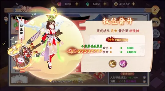 3、成功激活初生神后忍者大大就可以成神了哦。成神之后会开启永久浮空状态,并且在人物的头上会出现一个若隐若现的王冠哦。不仅外观上有所变化,还会使初始的技能变成神技能,战力大幅度提升。