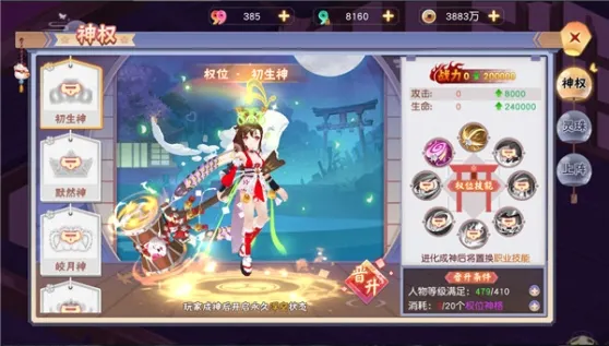 玩家的巫女是可以进行进阶来达到强化作用的。消耗相应的进阶材料或是直接用勾玉购买,就可以为巫女积累祝福经验进行进阶。进阶成功后将解锁新的外观幻化,同时也有新的阶级技能待玩家来解解释。巫女继承玩家的战力,培养越高攻击就越高哦。