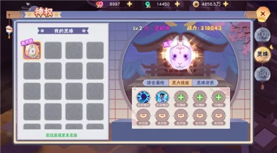 5、获得灵珠以后自然要将它上阵啦。每位忍者大大初始都拥有三个灵珠槽位,可以消耗勾玉或灵阵抵扣券开启更多的槽位。上阵灵珠后可以在右侧看到所有灵珠的技能列表以及属性加成,一目了然。上阵后的灵珠会在忍者大大环绕浮空,DIY灵珠的上阵顺序,外观会随之变化。