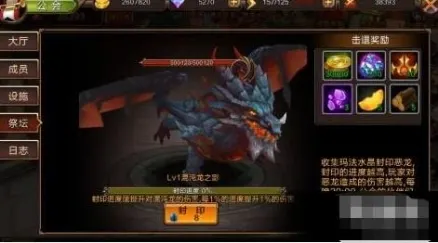 5、第二个原力的产出,就是公会副本的那条大龙了,不过每天固定时间开放,过时不候。如果急需或者想要大量的原力的话,要计划好时间去击杀公会的大龙哦。