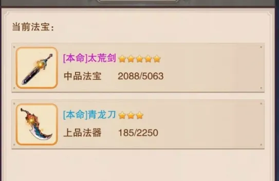 本命法宝有自我成长功能,不需要喂养就可以自动成长,但是速度实在太慢,远远赶不上玩家的等级增长,可以让你主养的本命法宝吞噬其他本命法宝来增长。
