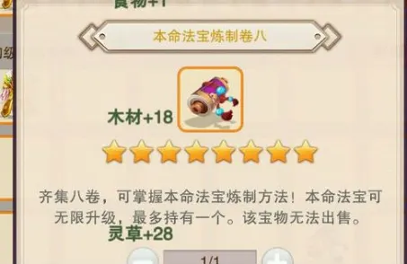 想要获得本命法宝,首先需要洗髓池100级之后获得炼制卷1-8,并在洗髓池120级后合成获得本命法宝图纸,收集好材料炼制。