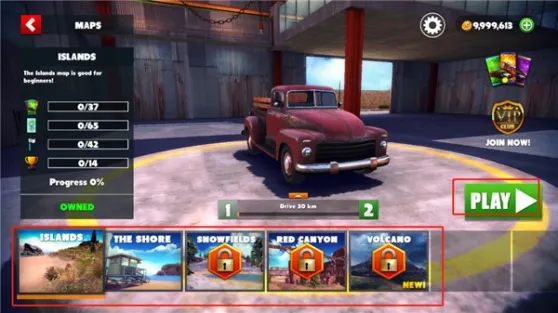 1、打开在本站下载的脱离道路无限金币版,进入游戏首页,选择你想要的游戏场景,点击开始游戏;