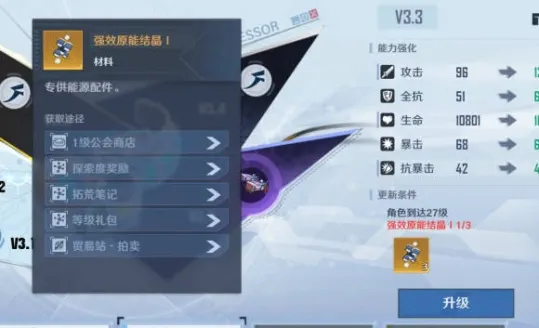 还有探险笔记也是可以得到结晶奖励的,而且探险笔记算是官方的指导,跟着笔记走,前期的战力就是一直合格的。拓荒笔记给了清晰的练度提升目标。工会商店也可以得到原能结晶,1500功勋就可以换一个,参加工会答题和每日捐献以及抑制器充能(在工会开启后原地挂机就行,每天20分钟)可以得到功勋奖励。商店入口名叫做幻屋。