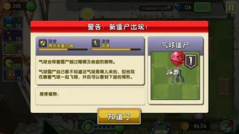 这个关卡还有一只新僵尸出现,那就是气球僵尸。气球会带着僵尸越过障碍及地面防御物。所以我玩家们多攒足阳光,种植植物,这样就能快速消灭他们啦!