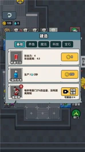 找好宿舍后优先提升床的等级和建造两个炮台,因为这个时候猛鬼还没有到来,所以优先提升床铺的等级快速获取金币,然后再去提升门的等级,之后床铺的等级可以暂停一下,优先提升门的等级,否则很容易被猛鬼突破,提升到需要电力的时候再去商店购买游戏机,否则会很容易被猛鬼突破;