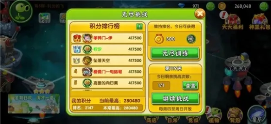 要50钻石(随着你重置的次数越多,所消耗的钻石数量也越多) 。重置之后可以进行跳关(提前是,你打了吗),能跳到你这周达到的最高关卡。跳关时,系统会自动帮你补充植物、阳光、无尽币、分数。但不能帮你选择boss关的补给。