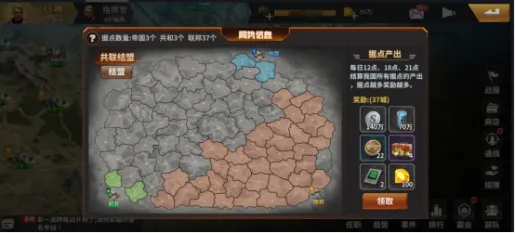 2、根据本阵营占领据点的数量,在每日12点、18点、21点,可领取据点产出的局势奖励。