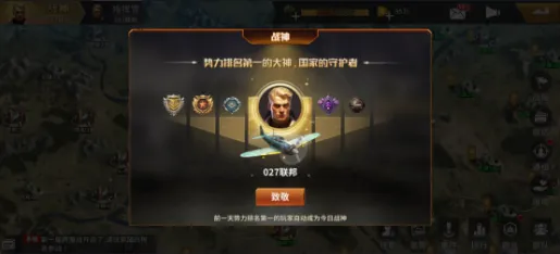 1、战神,前一天势力排名第一的玩家自动成为战神,可以“致敬”战神,获得复活卡,复活卡可复活阵亡的部队。