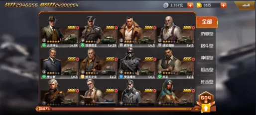 D、兵种存在克制关系:防御型格斗型冲锋型狙击型歼击型循环克制,克制时存在额外战力加成;