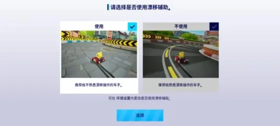 3、根据自己的游戏水平选择是否进行漂移辅助。