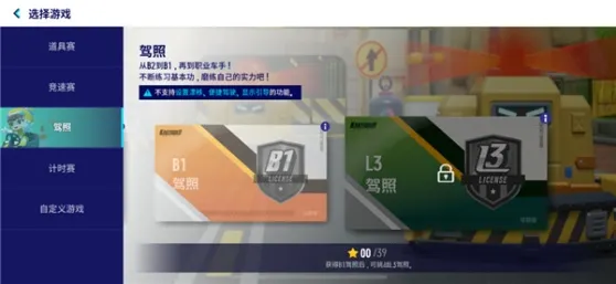 2、游戏的模式方面还是熟悉的道具赛、竞速赛、计时赛几个种类,道具赛中的道具自然也是熟悉的导弹、水炸弹、磁铁、香蕉皮等等。竞速赛需要考驾照,至少考到B2驾照才能参加。不过目前游戏中能考到最高等级的驾照只有L3,后续等级的驾照暂未进行开放。