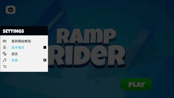 1、打开坡道滑板游戏最新版,进入游戏主界面,首先我们选择左上角的【齿轮】图标进入设置界面,