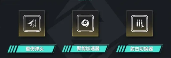 武器核心有三种:重伤弹头、聚能加速器、射击切换器。