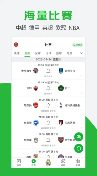 【比赛】足球赛事全搜罗,赛前分析、图文直播、赛况数据、阵容评分、比赛集锦,帮助你了解比赛的方方面面;