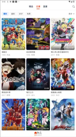 3、精选页面,这里的分类则比较详细,有动漫类型的分类,冒险、剧情、科幻、热血这些,还有动漫属地、年份这些分类。