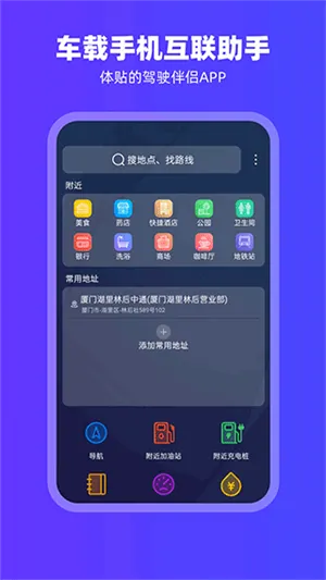 1、是一款一站式车载服务应用,提供附近生活设施查找、汽车相关服务;