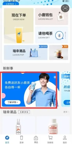 1、首先,打开小鹿茶app,进入到主页,可以看到图中的活动,点击进入。