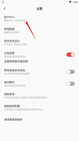 2、点击“账户中心”选项。