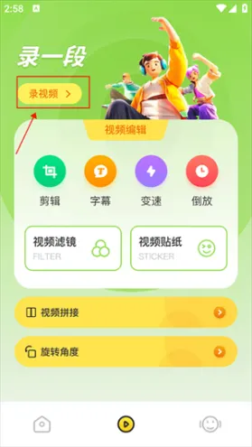 1、打开app后,在录视频界面中点击上方的录视频