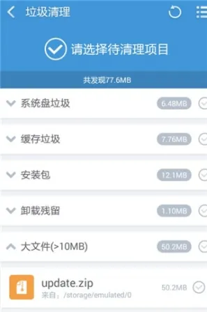 在手机的深度清理,360清理大师更有一招:除了较为常见的广告、安装包、大文件等清理项之外,360清理大师还具备日志文件、图库缩略图以及系统缓存、第三方软件缓存等清理功能,这些均为其他清理软件很少涉及的手动清理项,而360清理大师则可全方位为手机瘦身,轻松腾出G级空间,再存一万张照片轻轻松松。