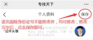 这里您需要注意一下,个人资料内所有的信息都必须填写完善且个人头像照片上传成功后,确保其他信息没有空白项后再提交保存,如个人资料内有空白项,证书将生成失败!