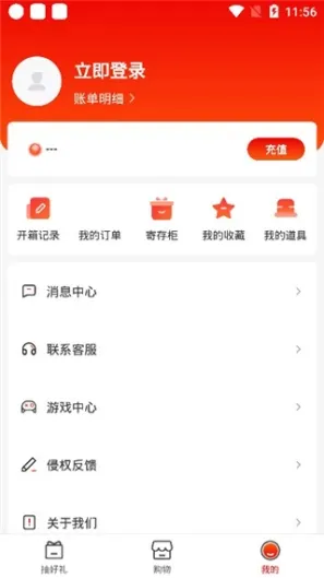 3、点击我的,里面为用户提供了开箱记录、我的订单、寄存柜等等功能。