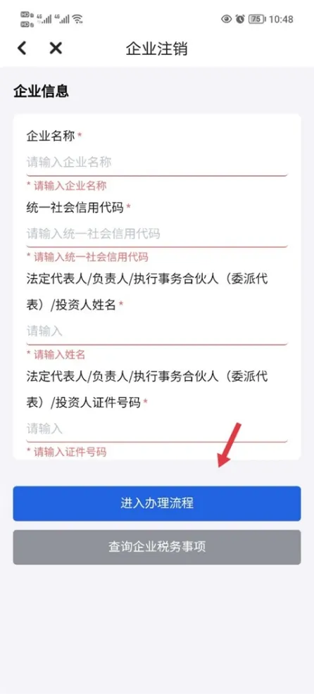 2、填写好相关信息之后点击进入办理流程,根据提升操作即可。