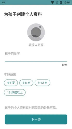 2、接下来要为孩子创建档案,输入名字下一步;