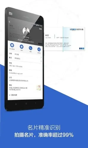 这是一款运行在Android平台上的名片扫描识别软件,由上海商霖华通专门为商务人士设计,具备精准识别、实时更新、批量扫描、隐私保护、即时通讯等特性。使用时,用户只需利用手机自带的摄像头拍摄名片,软件能快速扫描并读取名片图像上的所有联系信息,自动分类并按手机标准格式存入通讯录,操作简便,使用户能够随时随地与更多人交换名片,扩展人脉!