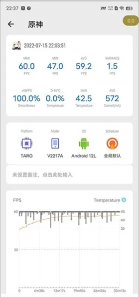 以上就是Scene5的使用教程,帧率监测的结果也不逊于性能狗太多吧?赶紧利用它测一下原神吧,看看你的手机能否在这款游戏里长时间满血运行?