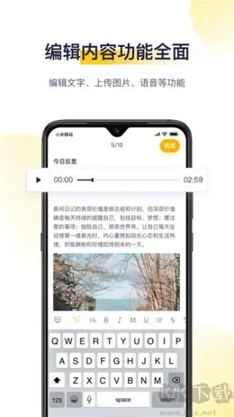 • 专业的日记模板:内置喜马拉雅时间管理类课程著名讲师提供的专业日记模板,让写日记记录更有针对性和建设性。同时您也可以自定义专属模板,不必每天重设问题,让记日记变得更有效率和方向。