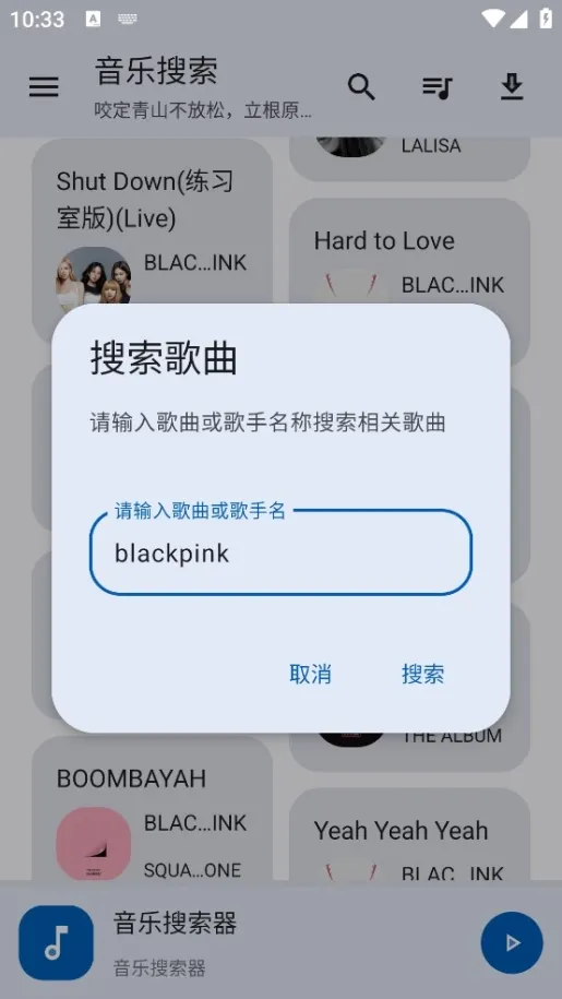 2、可以点击搜索栏搜索喜欢的歌手或者歌曲,比如Blackpink