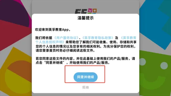 1、首先打开app,点击弹出来的温馨提示点击“同意并继续”