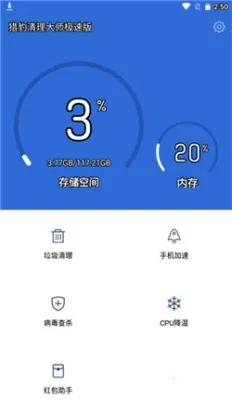 猎豹清理大师极速版app是一款快速清理和管理手机的工具,通过一键清理帮助用户扩展大量内存空间,还支持深度扫描垃圾数据和文件,病毒查杀功能将为你提供一个安全的手机使用环境。