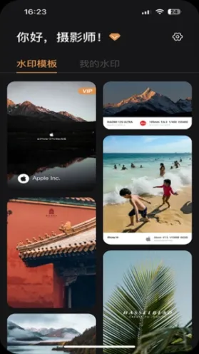 在应用程序中拍照是完全免费的,并且提供了许多精美的水印模板供用户选择。