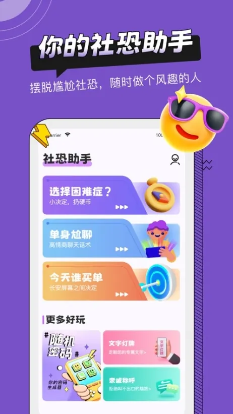 提供了丰富多彩的大转盘功能,使你能够迅速做出各种决定。你可以直接在转盘上编辑你想要的答案,多样化的社交恐惧助手能帮助你轻松应对尴尬的社交场合,助你成为一位风趣而优雅的人。
